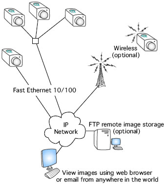 Enables real-time transmission from and control of surveillance cameras Wi-Fi network allows remote monitoring (via PDAs, desktops, etc.) and